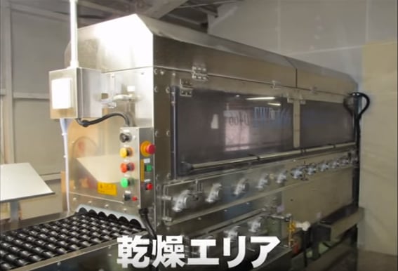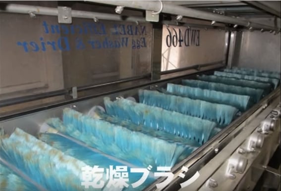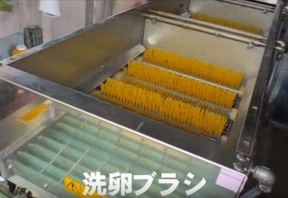 洗浄エリアでは12本の洗卵ブラシによって、卵をキレイに洗います。