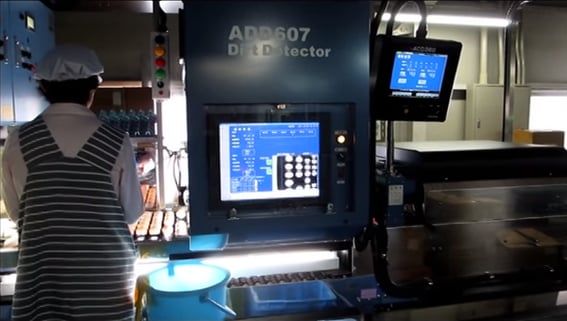 汚れが落ちていない卵やヒビが入っいる卵を、人の手によって取り除きます。