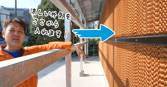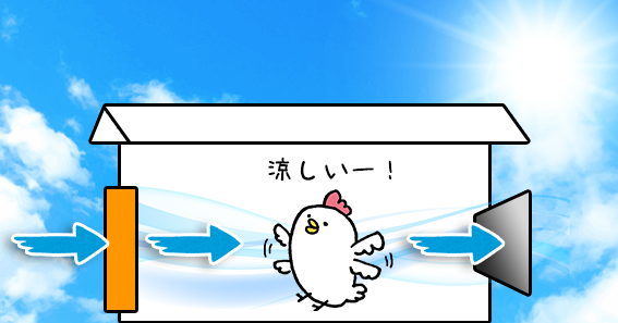 取り入れた外気を、鶏舎内に流して外に出すために、
