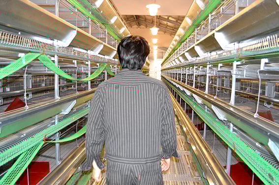 鶏舎の前方に卵が運ばれる仕組みでしたが、