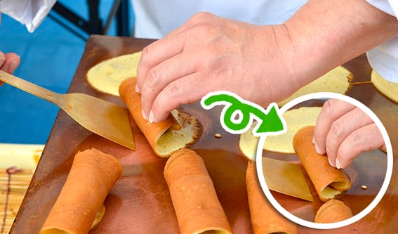 生地が焼けたら、あんこを入れてくるっと巻きます!