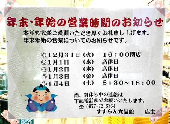 - 12月31日(火) 16:00 閉店
